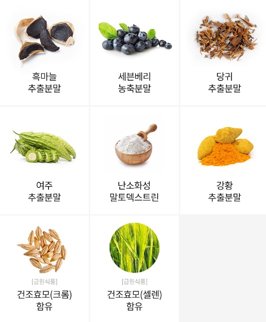 ○ 흑마늘부터 8가지 부원료 천연성분 배합으로 안전합니다.