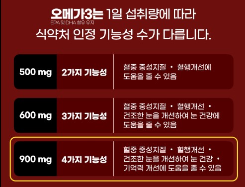 혈액, 혈중 중성지질 개선, 혈행 개선, 기억력 개선, 건조한 눈을 개선하여 눈 건강에 도움을 줄 수 있습니다.