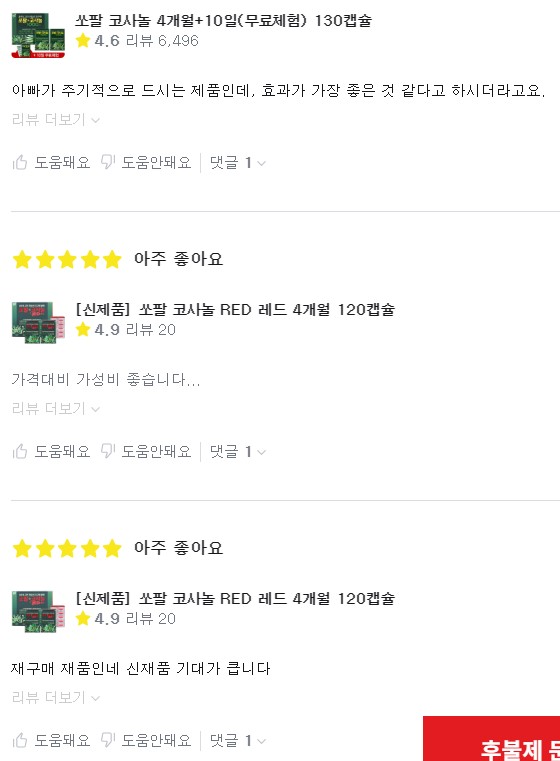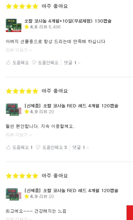 제품을 선택하기 전에 가장 먼저 확인해 봐야 하는 건 후기라고 생각합니다. 그냥 쓰는 후기들도 있지만 많은 양의 후기와 내용은 제품을 선택하는 데 있어서 매우 중요하기 때문입니다. 쏘팔코사놀 남진이 선택한 이 제품의 후기를 먼저 보겠습니다.