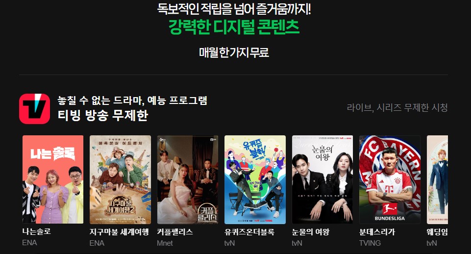 그리고 내일 개막하는 KBO한국프로야구 중계를 티빙이 독점으로 계약을 체결하게 되어 KBO한국프로야구 못지않게 티빙의 한 달 무료 보기 이벤트 인기가 뜨겁습니다.