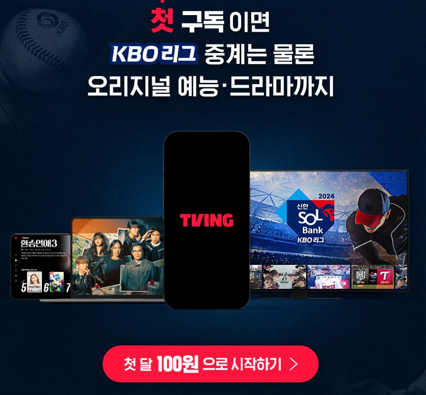 티빙 100원으로 보기는 KBO와 CJENM이 독점계약을 한 이벤트로 진행하고 있습니다.